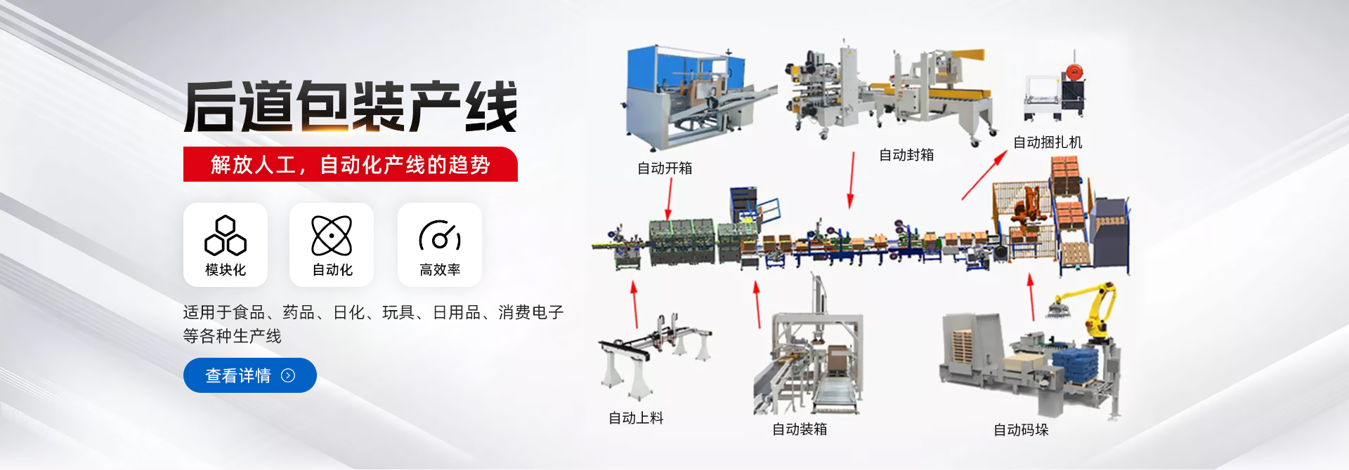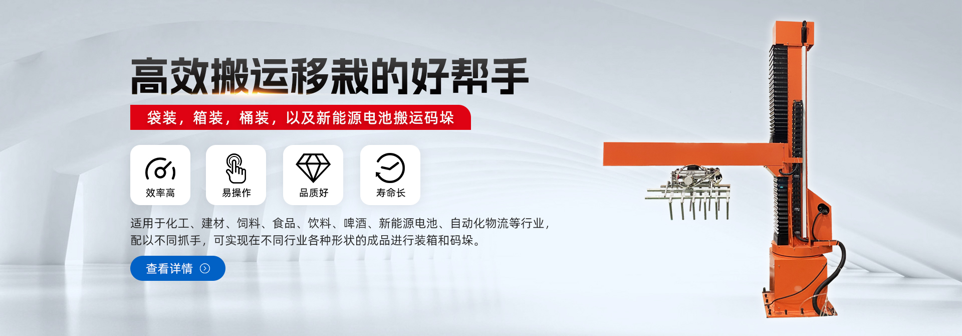 查看詳細(xì)介紹搬運(yùn)上下料/碼垛/裝箱機(jī)械手智能制造整體解決方案提供商