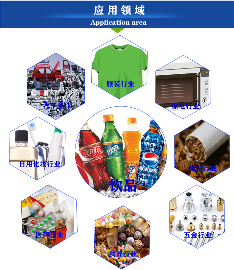 >  適合用于:食品、藥品、日化、玩具、日用品、消費電子等各種生產(chǎn)線